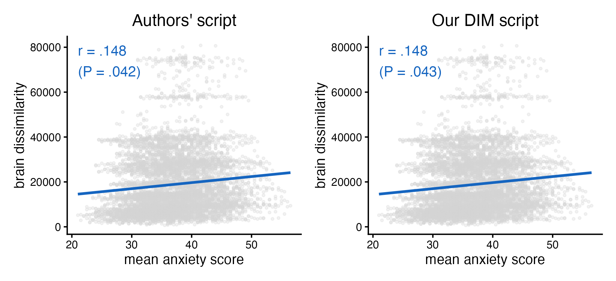 Kim & Kim (2022) demonstrated the utility of the Anna Karenina model in elucidating brain-behavior relationships. Prior neuroimaging studies on the structural connectivity of the ventral prefrontal cortex (vPFC)-amygdala pathway which mainly engages in emotion regulation reported inconsistent associations with trait anxiety, showing mixed positive and negative correlations (e.g., Clewett et al., 2014; Modi et al., 2013; Montag et al., 2012). These inconsistencies may stem from the limitations of scalar proxy measures, such as fractional anisotropy, which fail to capture complex morphological characteristics like kissing cross fibers (Figley et al., 2022; Riffert et al., 2014). To address this, Kim & Kim (2022) hypothesized that high trait anxiety is associated with a global disruption in pathway morphology, leading to a positive association between anxiety levels and morphological dissimilarity. This hypothesis was successfully validated using the Anna Karenina model and replicated in an independent dataset with a distinct age demographic.